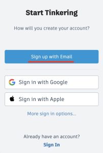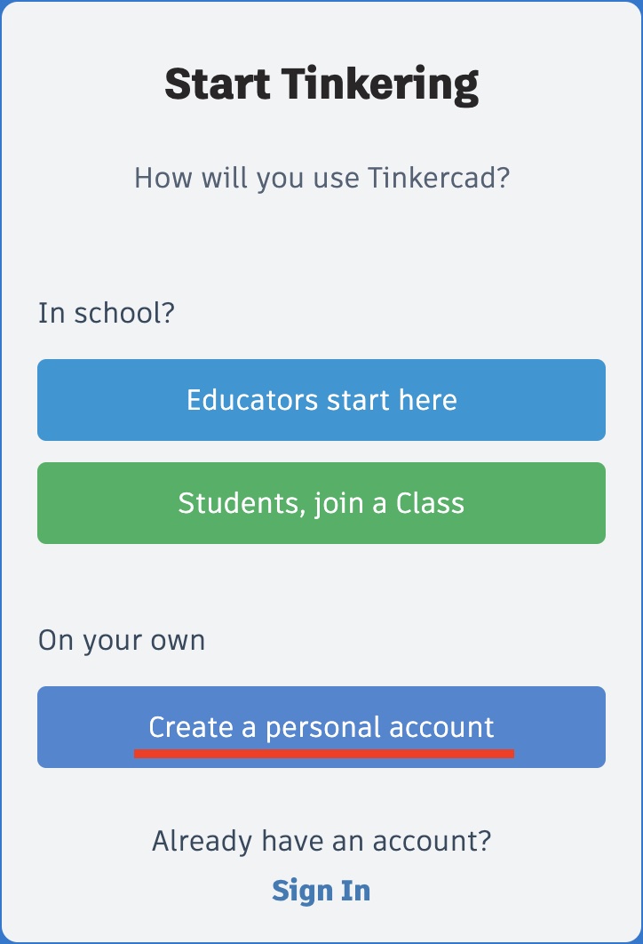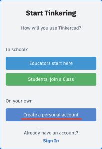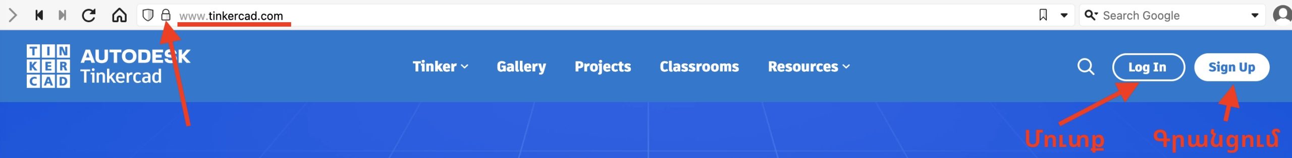 WEB բրաուզերում անցեք https://www.tinkercad.com/ հասցեյով և սեղմեք Sign Up (Գրանցում):