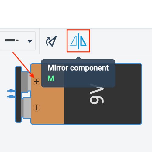 Ստեղծեք նոր սխեմա Դաս 5 Tinkercad-ում, վերցրեք 9 վոլտ մարտկոց և արտացոլեք այն այնպես, որ դրական կոնտակտը լինի վերևում:
